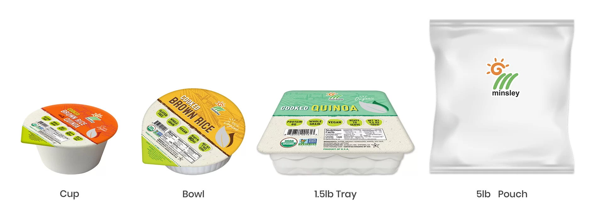 We produce fully-cooked, RTE (Ready-to-Eat) bulk sizes of rice, ancient grains (quinoa, farro…), beans, lentils, and more.